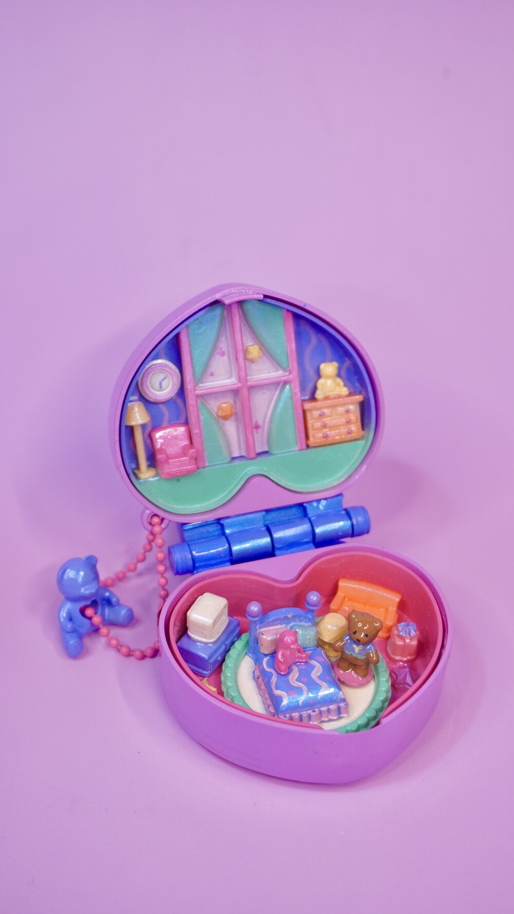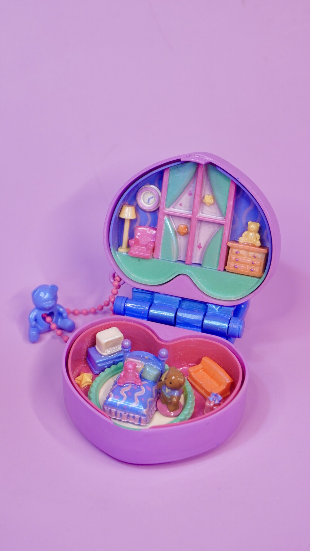 민트색 커튼과 곰돌이